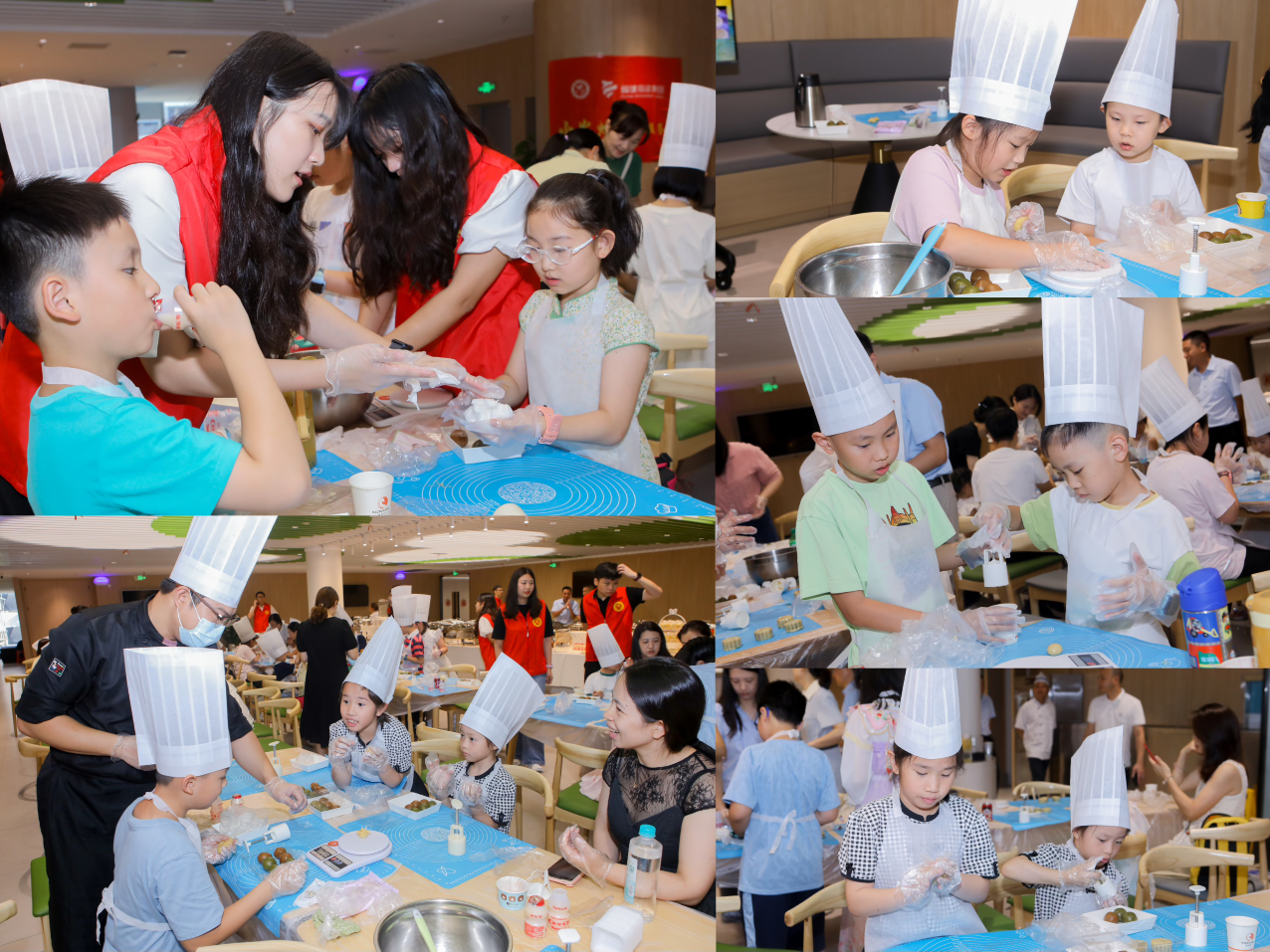 经糕点师傅的讲授,小朋友们学习了传统广式月饼、冰皮月饼的制作方法,并在“小火炬”志愿者哥哥姐姐们的带领下自己动手制作月饼。经过一番尝试与实践,一枚枚口味丰富、造型精致的月饼在小朋友手中不断呈现。他们还将亲手制作好的月饼送到各部门职工手中,分享美味,送去中秋节美好祝福。